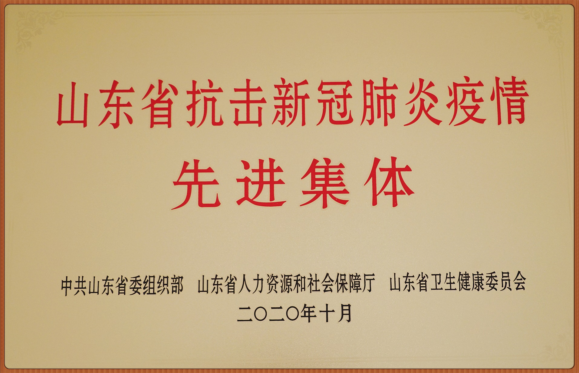 近日,山东省抗击新冠肺炎疫情表彰大会在山东会堂隆重举行,我院被中共山东省委组织部、山东省人力资源和社会保障厅、山东省卫生健康委员会联合授予“山东省抗击新冠肺炎疫情先进集体”荣誉称号。