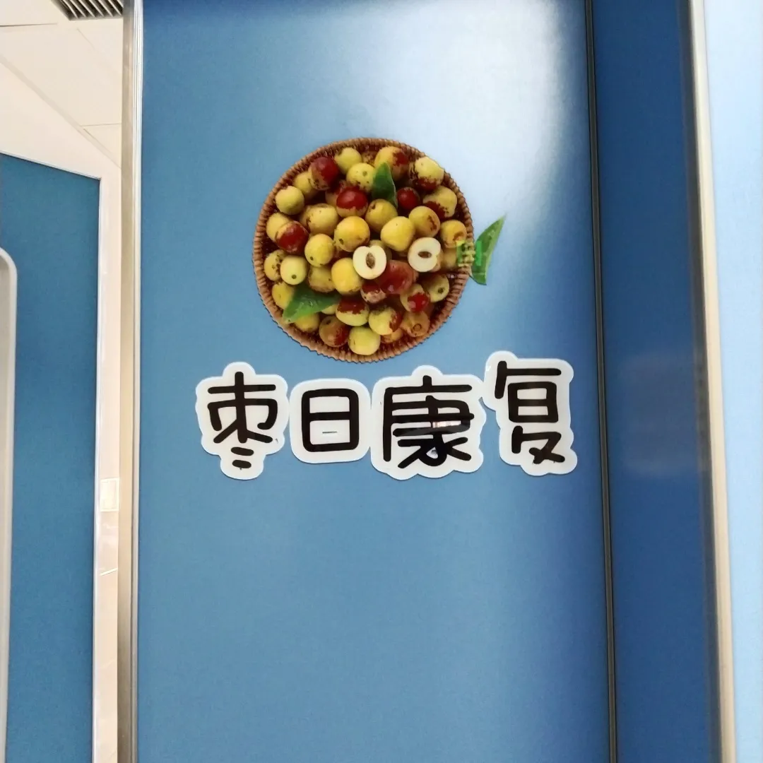 走进老年病区,便能看到一幅幅形象逼真的水果图案张贴在病房门上,苹果、草莓、桔子、西瓜……每种水果都搭配着温馨的祝福语,苹果房对应“苹”安喜乐,草莓房寓意幸福“莓”满,桔子房代表大“桔”大利,石榴房代表“榴榴”大顺,哈密瓜房代表甜甜蜜蜜。这些水果图案色彩鲜明、辨识度高,对于视力不佳、记忆力减退的老年患者来说,是一种非常直观且容易记忆的标识。