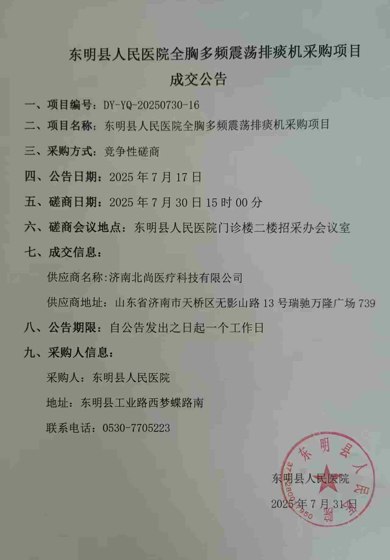东明县人民医院全胸多频震荡排痰机采购项目成交公告
