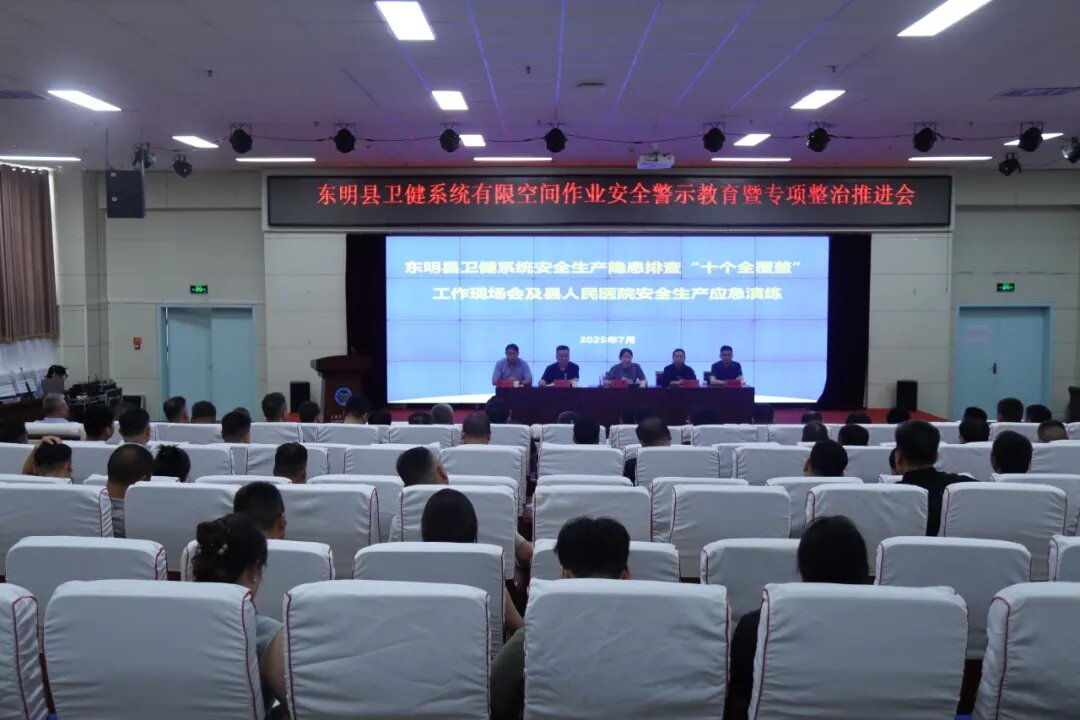 7月3日下午,东明县卫健系统有限空间作业安全警示教育暨专项整治推进会及卫健系统安全生产隐患排查“十个全覆盖”工作现场会、医院安全生产应急演练在东明县人民医院召开。县委常委、副县长桑蕊,县卫健局党组书记、局长周元武,医院党委书记潘成佩、院长关永杰出席会议。医院领导班子成员、中层干部与县乡各医疗卫生机构主要负责人齐聚一堂,共商安全生产大计。