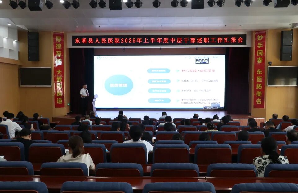 为全面梳理2025年上半年工作进展,科学谋划下半年工作方向,东明县人民医院于7月16日至17日在科教楼五楼报告厅召开了2025年上半年度中层干部述职工作汇报会。院领导班子及中层正职以上领导干部齐聚一堂,共同回顾过去、分析当下、展望未来。