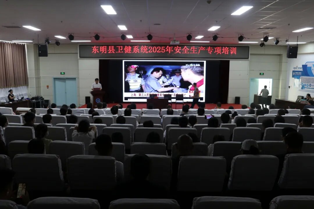 为深入贯彻安全生产工作要求,扎实推进隐患排查整治与专项整治行动,切实提升全县医疗机构安全管理水平,7月17日上午,由东明县卫健局主办、东明县人民医院承办的“2025年度医疗机构安全生产专项培训”在医院门诊楼三楼报告厅举办。本次培训聚焦医疗机构安全核心领域,旨在全面提升医护人员安全防范意识与应急处置能力,消防安全被列为重中之重。