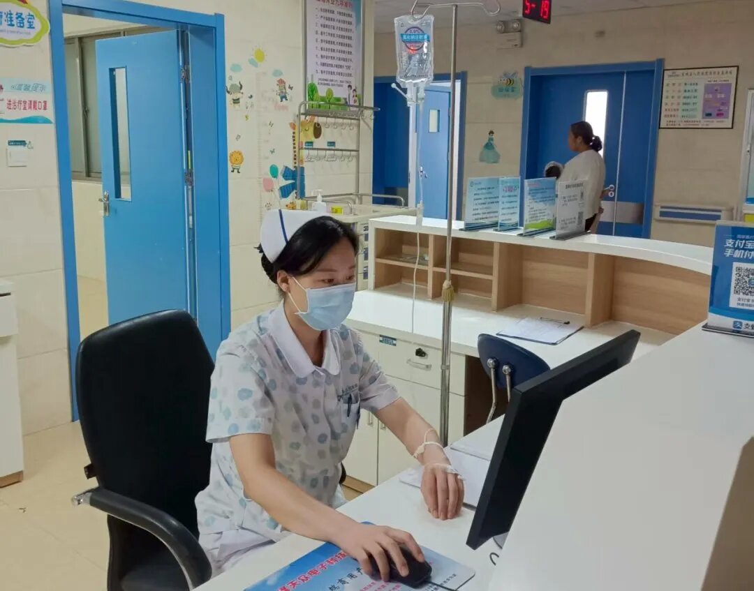 就这样,李贞林的工作日常多了一份“特殊装备”——悬挂在胸前或固定在支架上的输液袋。小儿二科主任邵玉红与同事们多次劝她回病房静养,都被她“软磨硬泡”劝了回去:“输着液不耽误查看患儿情况,家属有疑问,我也能慢慢听、慢慢跟他们说。”输液期间,她依旧每天提前到岗,按时巡查病房:俯身查看患儿的输液滴速与穿刺部位,用手势辅助听力和家属沟通用药注意事项,坐在护士站逐份核对护理记录;偶尔因听力不便没听清同事的话,便笑着请对方再讲一遍,自始至终没有一丝急躁。