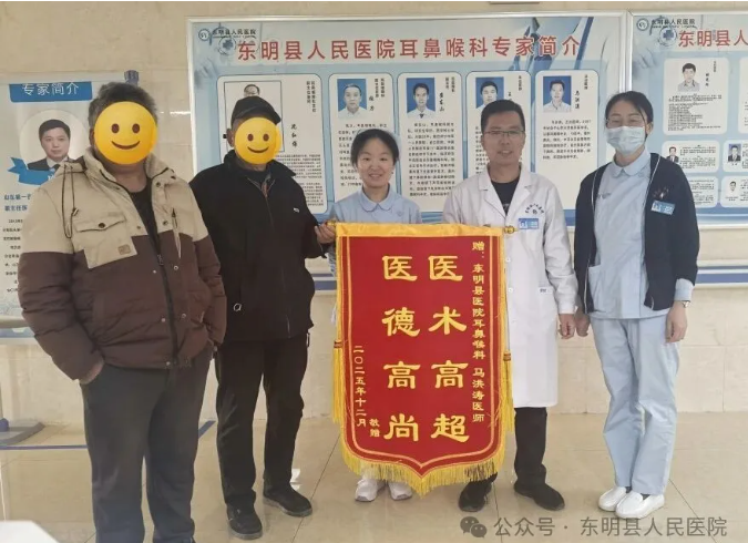 近日,东明县人民医院耳鼻喉科团队成功为一名老年面部肿瘤患者实施手术。患者术后恢复良好、容貌基本复原,康复后特送锦旗致谢,彰显了医院诊疗服务的扎实成效。