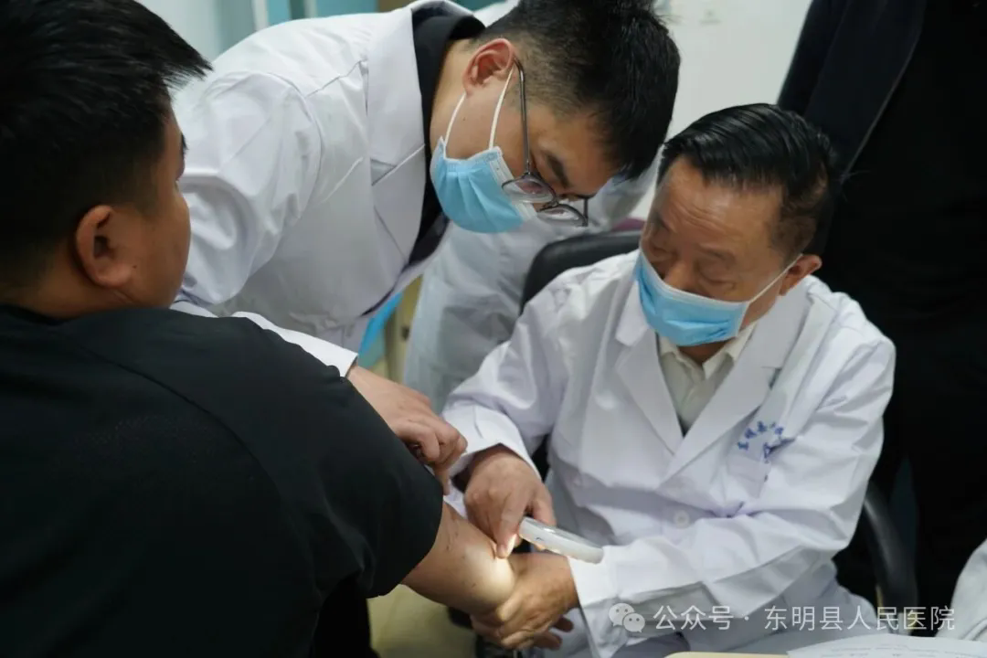 会前,廖万清院士、杜明威教授在医院医学美容科坐诊,为皮肤病患者提供精准诊疗服务,让基层群众在家门口享受到国家级优质医疗资源。