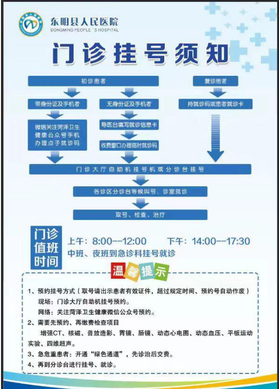 东明县人民医院-门、急诊就诊流程图
